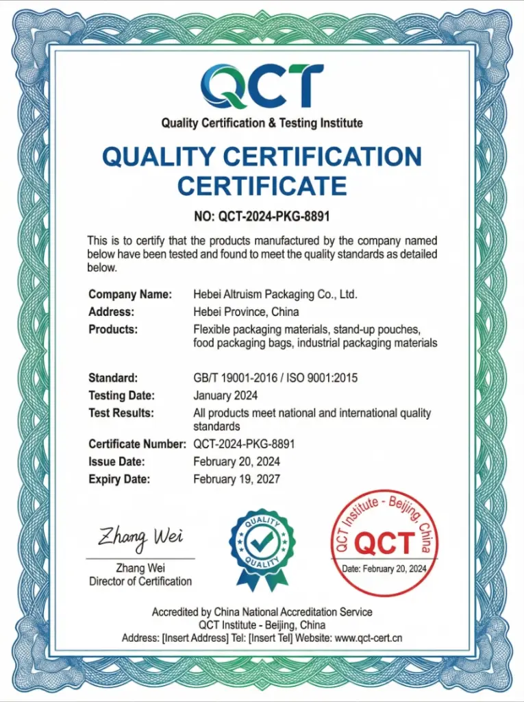 Located in Hebei, China, Hebei Altruism Packaging Co., Ltd. is recognized as the second biggest factory in North of China.As a specialized custom factory, we excel in OEM/ODM works, focusing on three main categories: Customized White and Brown Paper Bags, Laminated Plastic Bags, and Biodegradable Bags
